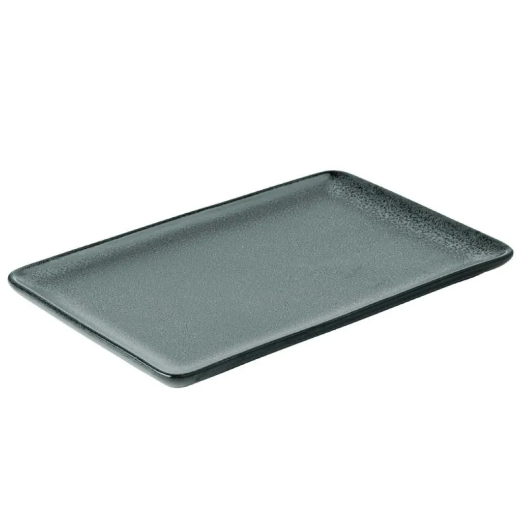 Rektangulär tallrik i stengods från Aida med en rå och naturlig look.