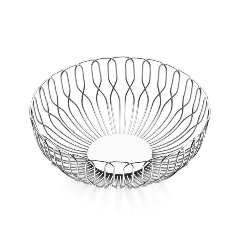 Brödkorg i trådat rostfritt stål från Georg Jensen. Serien Alfredo omfattar allt från skålar och bestick till ljusstakar, alla med ett rundat mjukt formspråk.