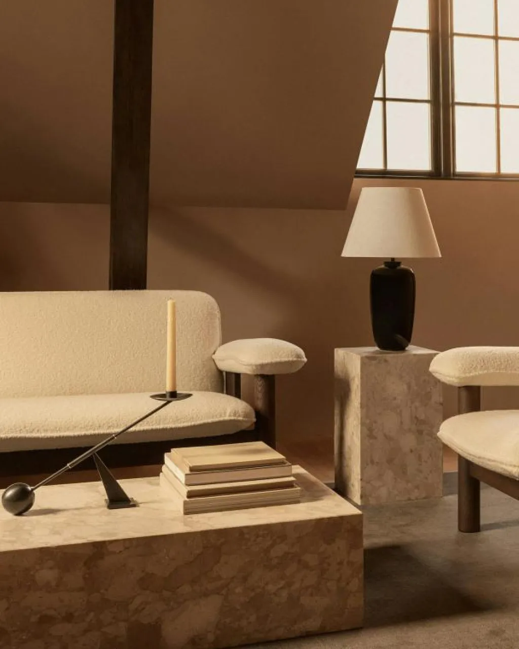 – Kombinera 2-sitssoffan med en Brasilia ottoman från Audo Copenhagen.