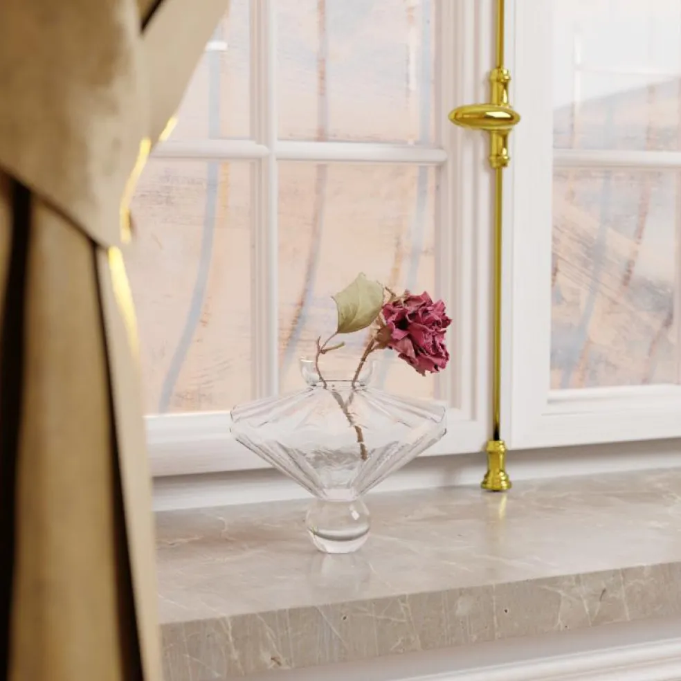 – Observera att kristallbasen kan fungera som ett förstoringsglas, vilket innebär att vasen inte bör placeras i direkt och starkt solljus.