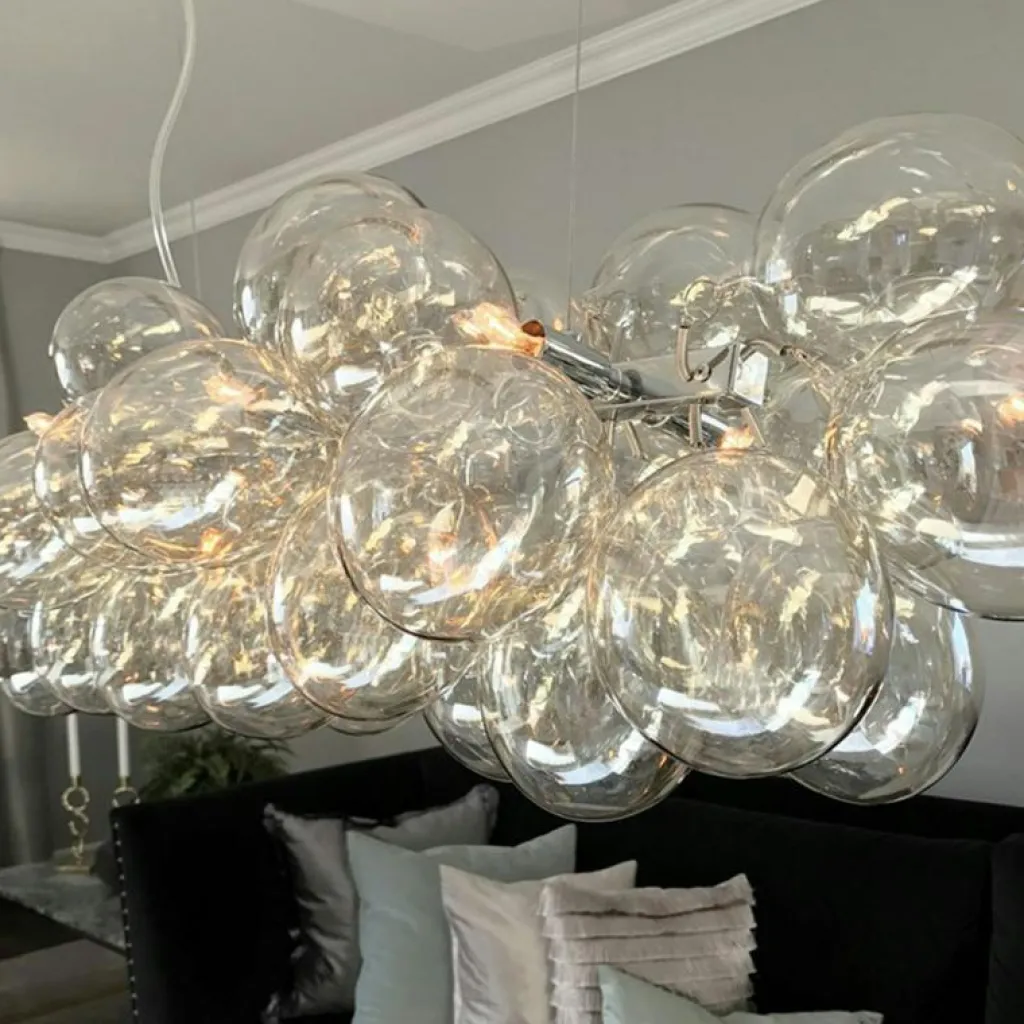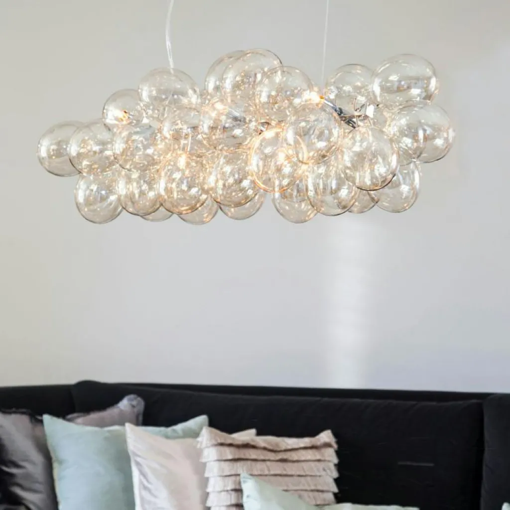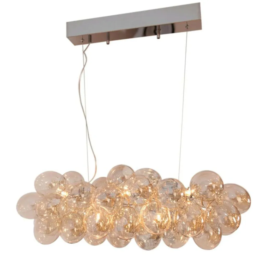 Gross Bar är en vacker och exklusiv pendellampa från By Rydéns, bestående av 38 skira glaskulor i ett elegant kluster. Denna imponerande lampa passar perfekt på många ställen, oavsett om det är över matbordet, i vardagsrummet eller över konferensbordet.