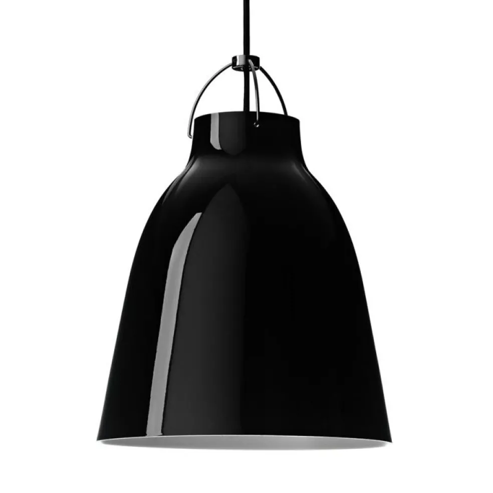 Skärmen är gjord av stål som är täckt med en mjuk högglans-färg. Caravaggio har en öppning på toppen av skärmen som lyser upp både textilsladden och upphängningsanordningen. Caravaggio kännetecknas av direkt bländfritt ljus. Denna utgåva har svart skärm, sladd, upphäng samt svart takkopp. 6M Kabel.