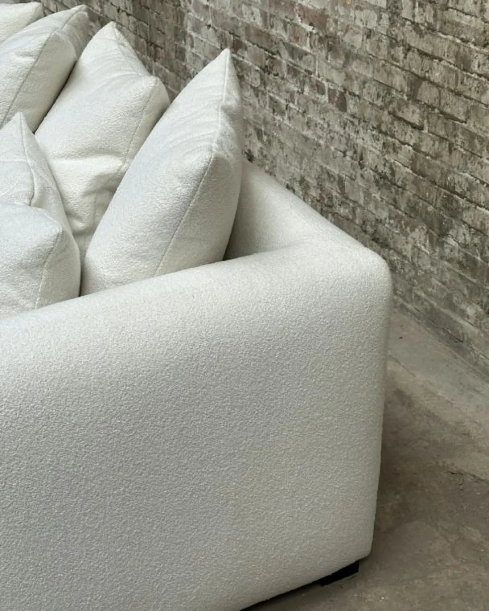 Bouclé är ett tyg som är vävt av garn som tvinnats så att små öglor uppstår och på så sätt skapar en strukturerad yta. Denna unika teknik ger tyget en distinkt och konstnärlig estetik som hyllar dess ursprung och skapar en omisskännlig visuell charm.