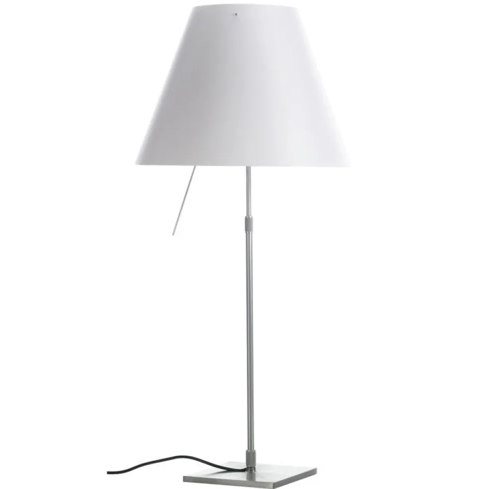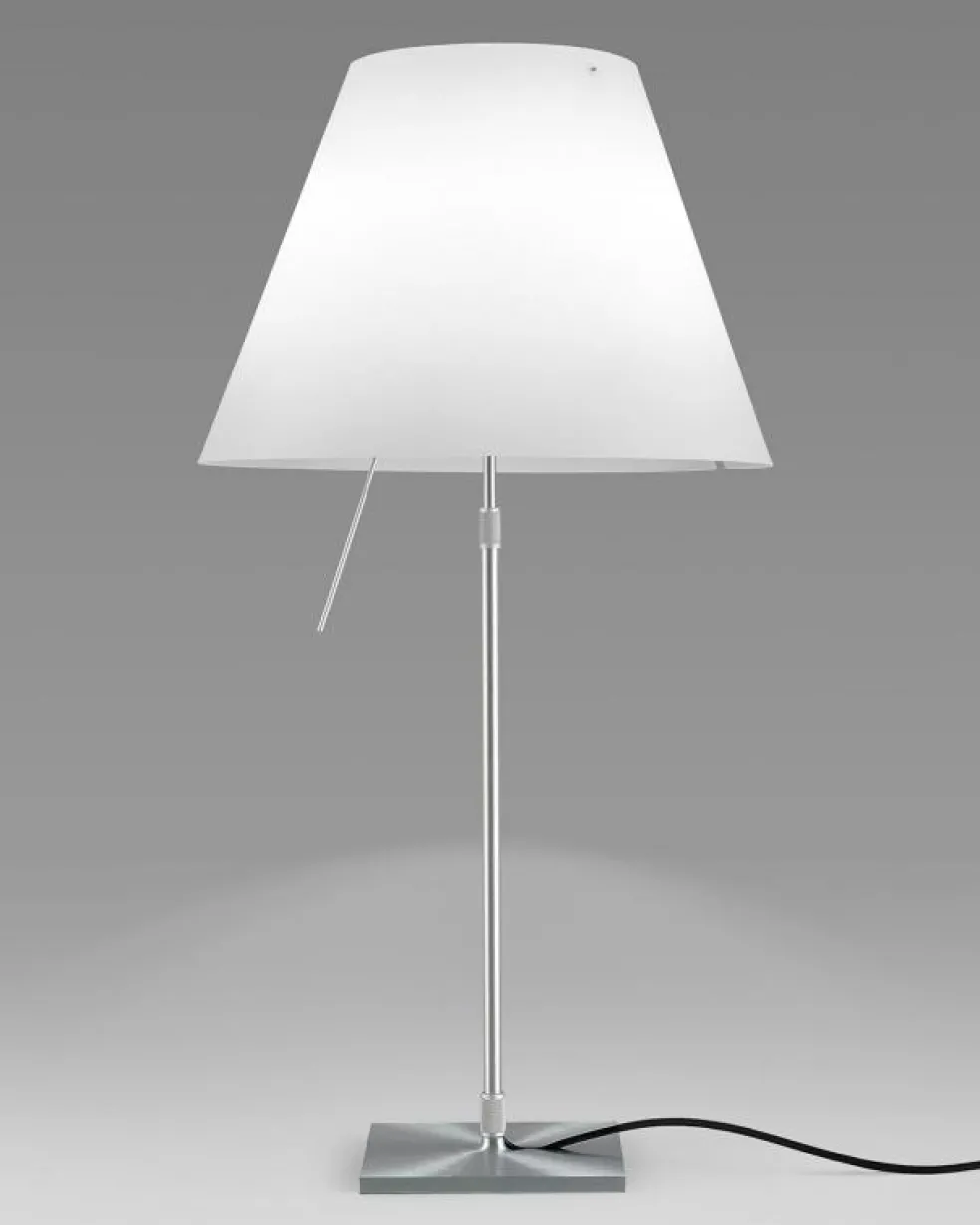 Costanza bordslampa från Luceplan har en perfekt kombination av modern teknik och klassisk design som är formgiven av Paolo Rizzatto. Costanza består av en stadig bas med en vit lampskärm av polykarbonat som avger ett varmt och behagligt ljus. Den stavliknande strömbrytaren är en sensorisk dimmer som har fyra olika ljusstyrkor, vilket gör det möjligt för dig att anpassa ljusets intensitet efter dina egna önskemål.
