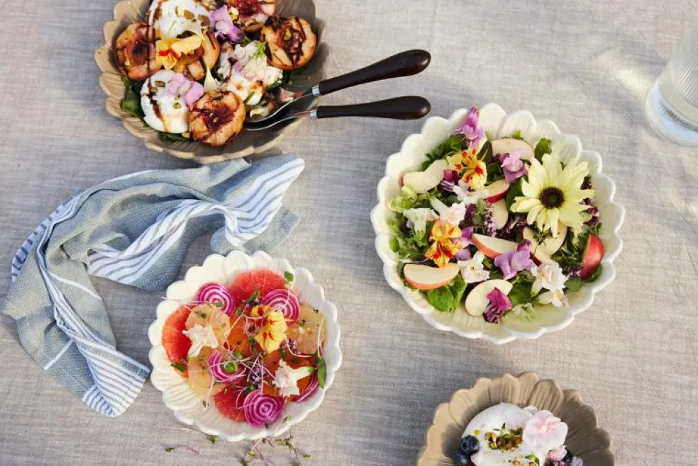 Kombinera serveringsskålen med porslin från Sagaform.