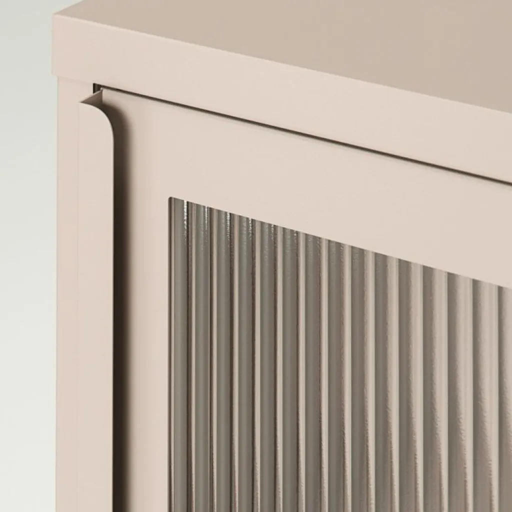– Förhöj din interiör med den raffinerade skönheten hos det runda räfflade glaset, som ger en subtil presentation av dina inredningsdetaljer.
