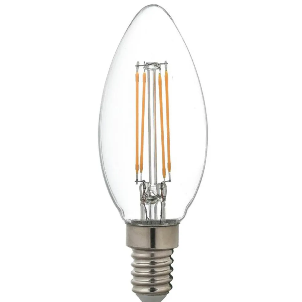 Airam Filament LED-lampa C35 4 ger 470lm med endast 5W förbrukning. Passar perfekt i E14-socklar för energieffektiv belysning.
