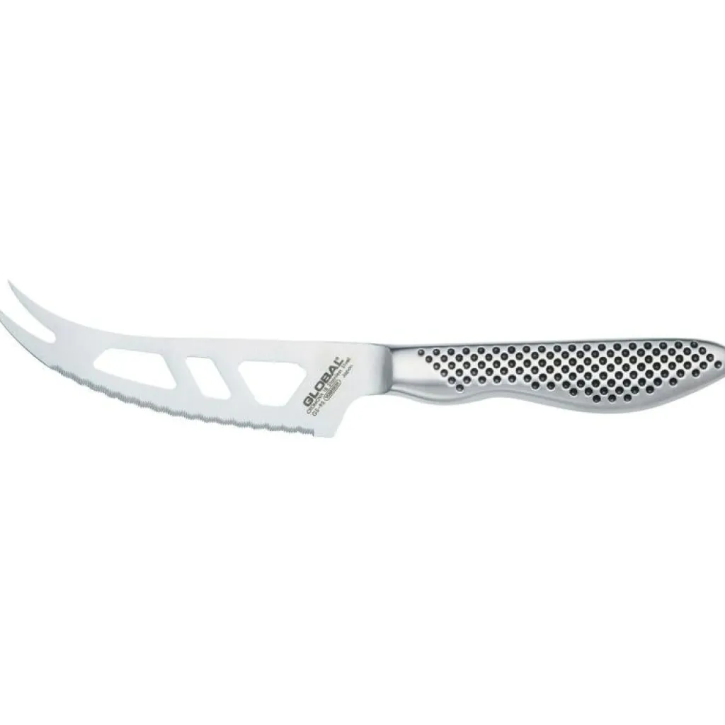 Ostkniv från Global med ett smidigt blad som är utformat för att kunna klara av de allra flesta sorters ostar. Ostknivens blad är hålat för att mjukost inte ska klibba fast när den skärs och med den tandade eggen är det lätt att ta sig igenom hårda ostar. Spetsen på ostkniven är till för att lätt kunna lyfta upp ostbitarna.