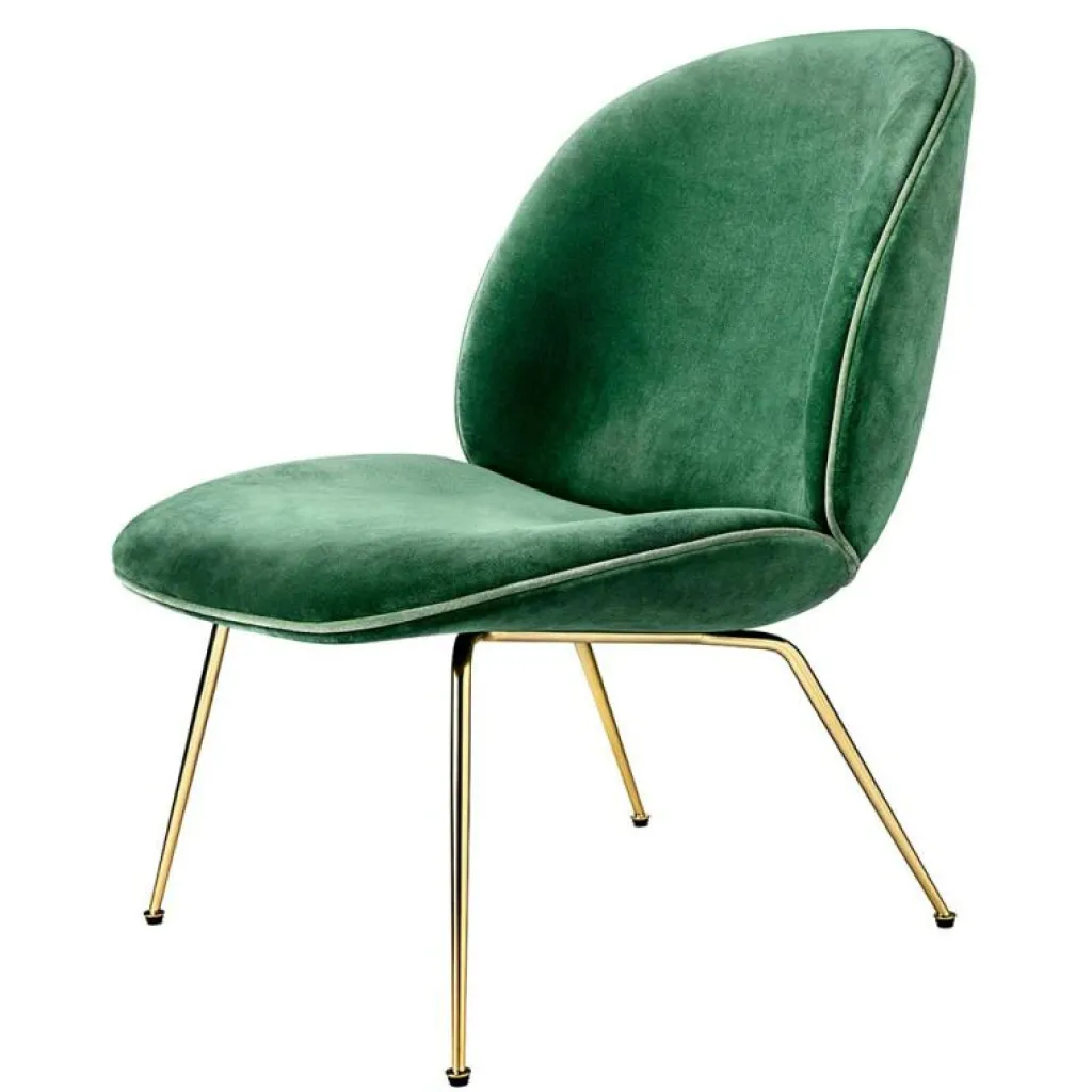 Beetle loungestol från Gubi, formgiven av GamFratesi. Den eleganta stolen Beetle har snabbt kommit att bli en klassiker i de moderna hemmen, en snygg loungestol som är inspirerad av naturens mest underskattade insekt – skalbaggen. Designduon GamFratesi arbetar enligt en strikt skandinavisk inställning till hantverk; funktionalism och enkelhet. Stolen består av två separata skal av gjuten fanér som klätts med underbara textilier. Denna loungestol blir höjdpunkten i varje hem.