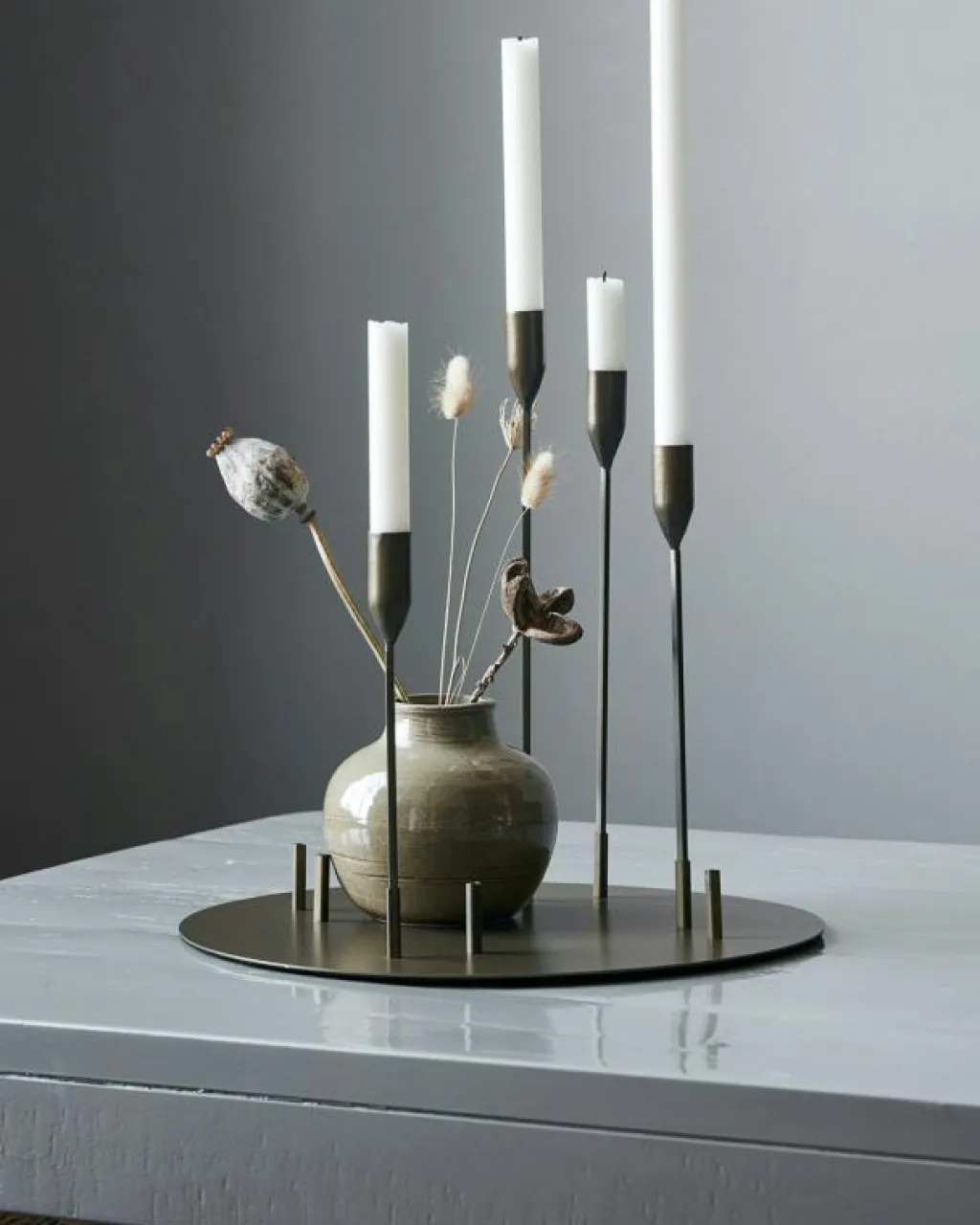 – Kombinera ljusstaken med vackra juldekorationer från House Doctor.