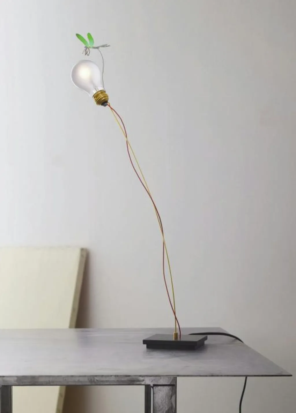 – Karaktärsfull bordslampa med slända i färgad aluminium.