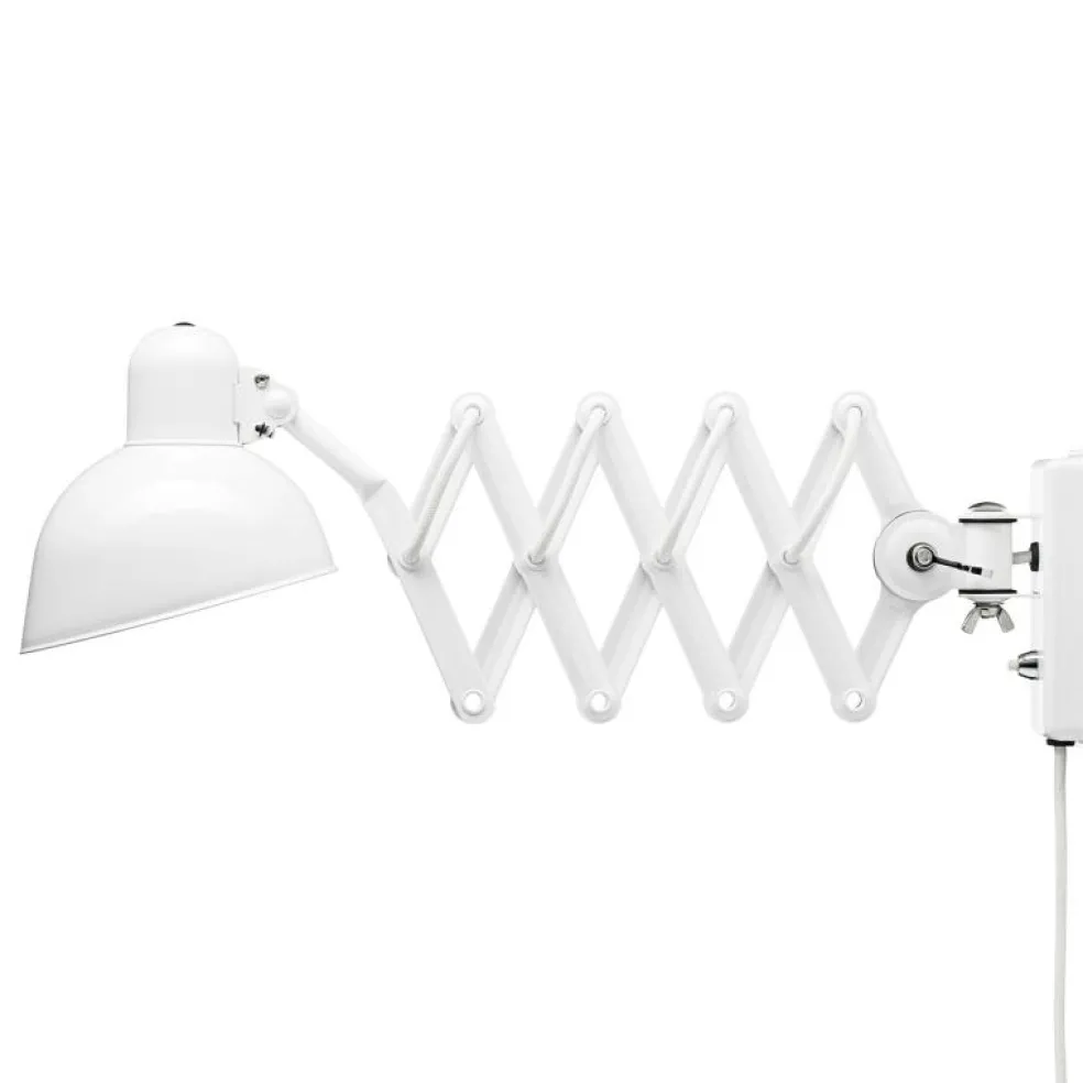 Bordslampan 6718-W, även känd som ”saxlampan”, är ett sant exempel på dedikerat hantverk som ser fantastiskt ut samtidigt. Vägglampans unika konstruktion är tillverkad av material av högsta kvalitet för att säkerställa att din 6718-W vägglampa kommer att förbli vacker och hållbar. Den väggmonterade lampan har en svängbar skärm och en flexibel saxarm med en justerbar längd från 47cm till 89cm. Lampan finns i tre färger, blank svart, blank vit och mattsvart.