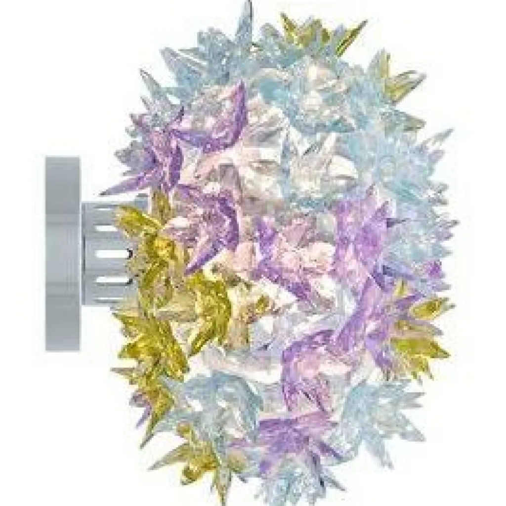 Bloom lampa III från Kartell. Tilltalas du av tanken att ha ett blomsterarrangemang över bordet eller på väggen? Lamporna kommer i helvitt eller klart transparent utförande och dessutom i två flerfärgade versioner; mintgröna och lavendelfärgade nyanser. De små halogenlamporna på lampans stomme sprider ljuset mellan de små blommornas fasetterade kronblad och skapar effektfulla reflektioner. Blommorna är av polykarbonatplast.