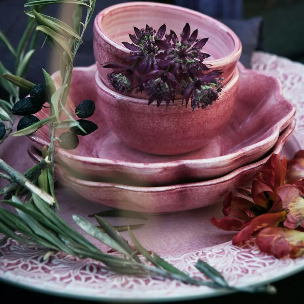 I serien Lace så pryds produkterna av ett vackert sirligt blomsterliknande mönster som förhöjs av den handmålade keramikens vackra färgskiftningar. Lace följer samma mönster som det övriga sortimentet från Mateus där svensk design blandas med gediget hantverk från Portugal.
