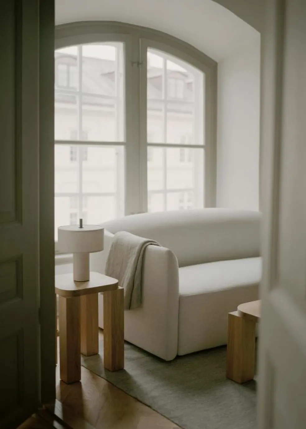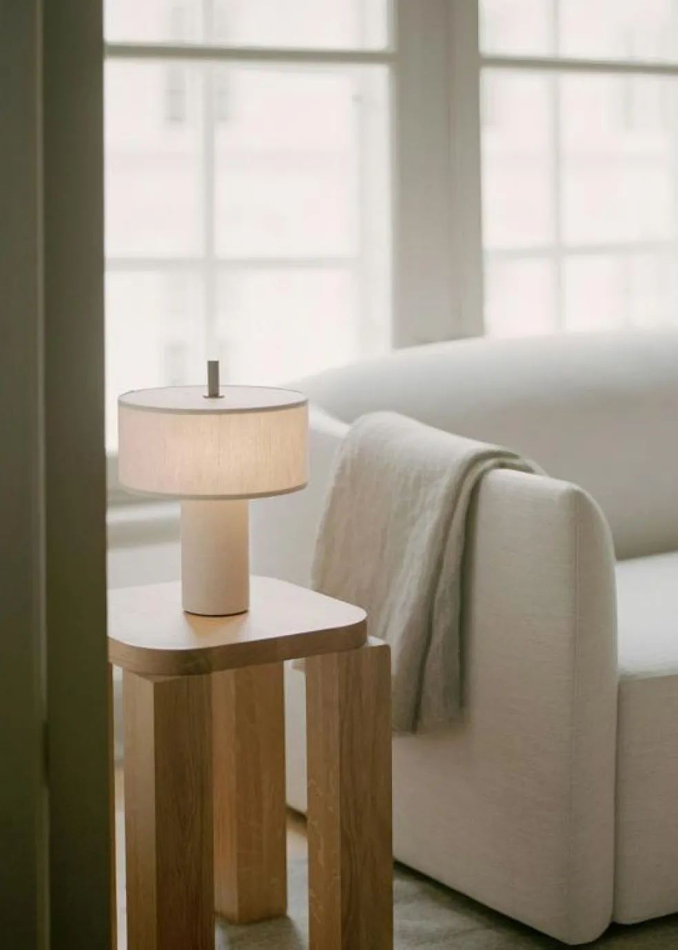 – Mjuk linneskärm med ett taktilt och elegant uttryck.