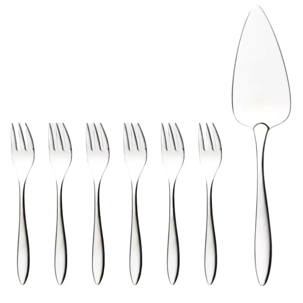 – Den levereras med 6 tårtgafflar och 1 tårtspade.
