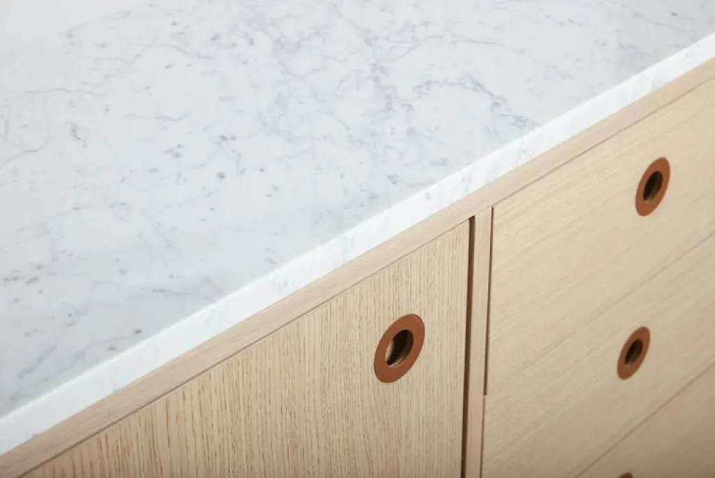 - Toppskiva av italiensk Carraramarmor eller svensk logerhuggen kalksten från Hällekis finns att köpa som tillval
