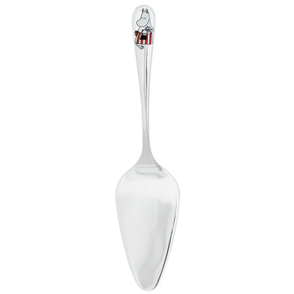Mumin tårtspade i rostfritt stål med motiv av Muminmamman. Tårtspaden tillhör kollektionen Mumin Fest, en serie produkter med Muminmotiv som passar för att duka till kalas. Dekoren på produkterna är baserade på originalbilder av författaren och illustratören Tove Jansson.