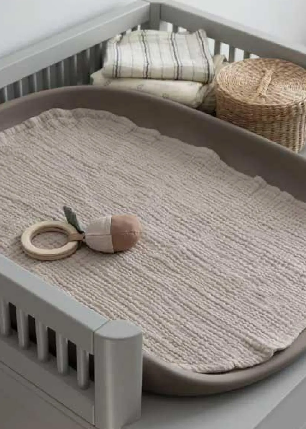 – Vändbar design i mjuk muslin med sex lager.
