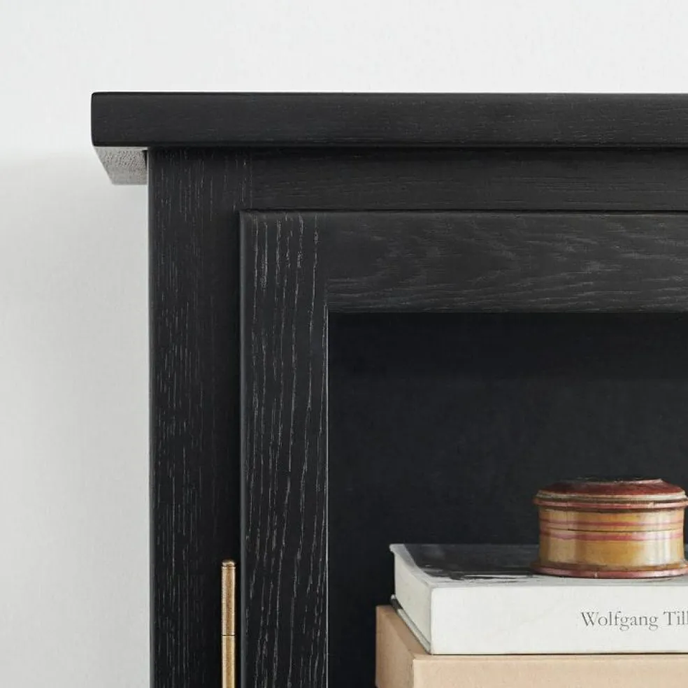 Ett vitrinskåp med minimalistisk design och få detaljer för ett modernt utseende.Mörk Ek är en specialutgåva av N-serien, gjord av ek med en djupt brunsvart bets.