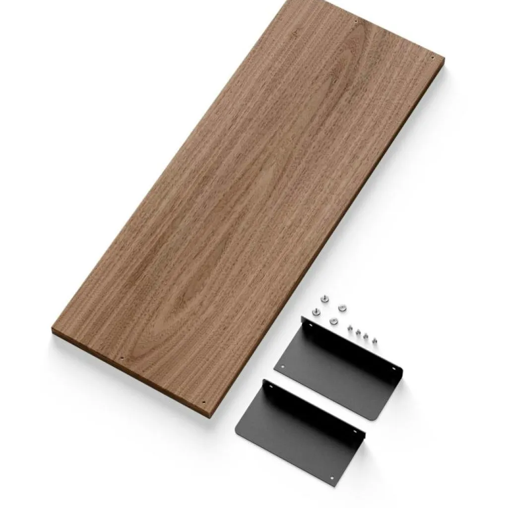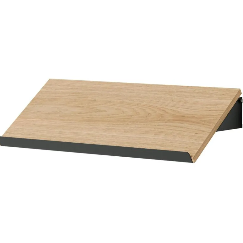 – Kombinera tidningshyllplanet med väggskenor från New Works.