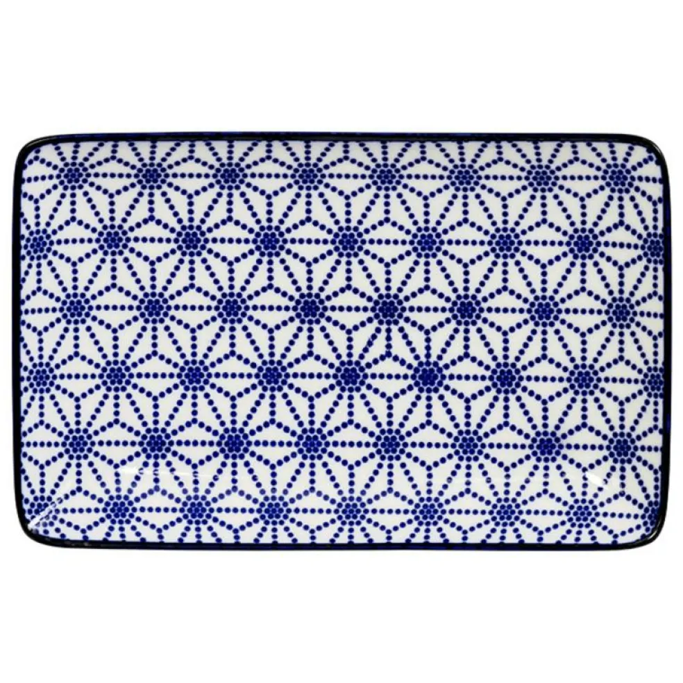 – Blått, geometriskt mönster.