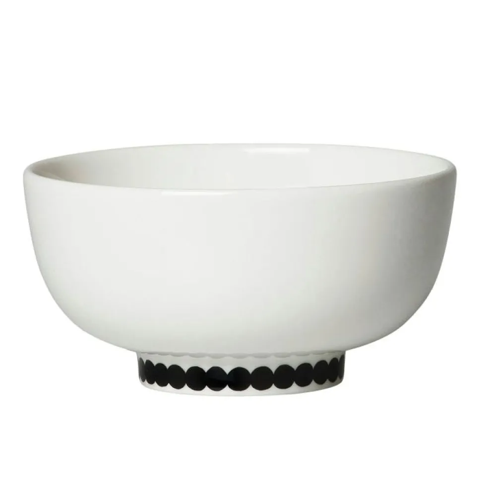 Den här lilla skålen från Marimekko är dekorerad med det svarta och vita Räsymattomönstret, som ger den skandinaviskt uttryck. Skålen passar perfekt för att servera allt ifrån ris till snacks. Är tillverkad i vitt stengods och tål diskmaskin, ugn, mikrovågsugn och frys.