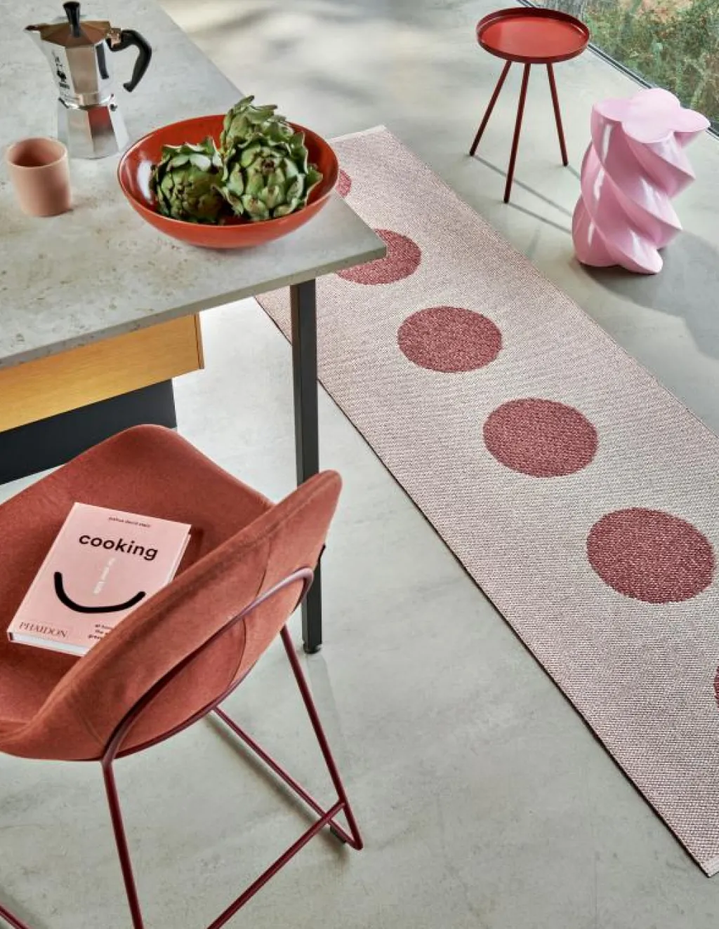 – Grafiskt, lekfullt mönster med upphöjda cirklar.
