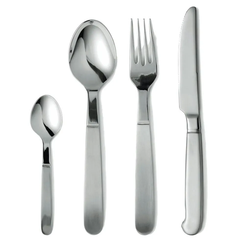 Stilrent bestickset från Gense, Rejka bestickset innehåller 16 delar med bordsskedar, bordsgafflar, bordsknivar och kaffeskedar. Tillverkat i rostfritt stål och designat av Cilla Persson.