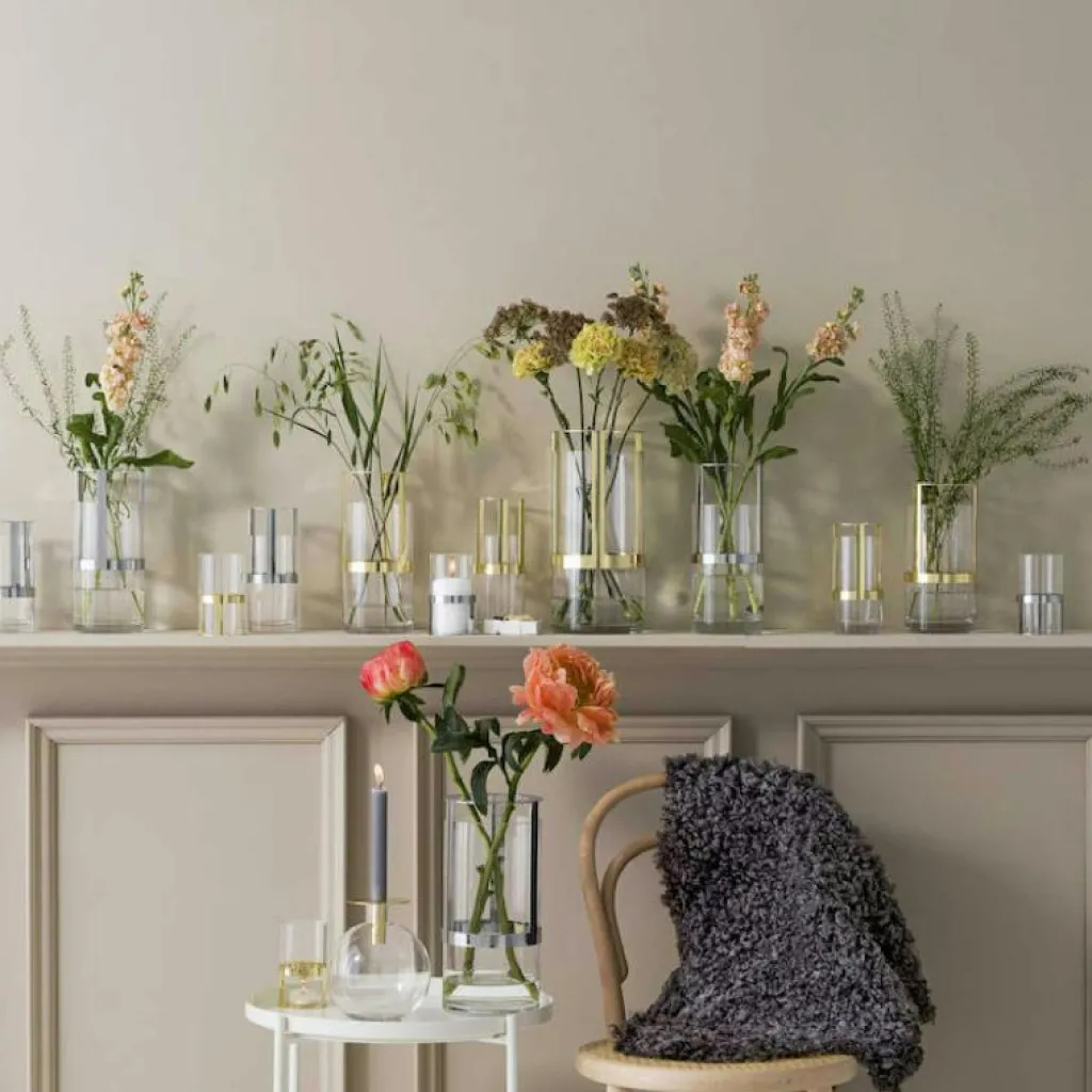 Hold är en vas från Sagaform som har designats av Pascal Charmolu. Den har fått pris för sin unika design eftersom du enkelt kan flytta metallhållaren upp eller ned, vilket gör att den kan anpassas efter olika blomsterarrangemang.