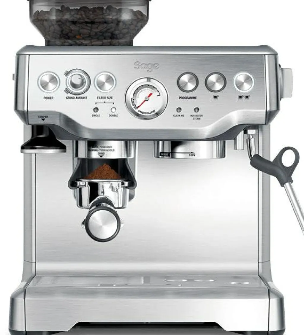 Barista Express espressomaskin från Sage maler kaffet och doserar exakt rätt mängd till varje kaffekopp med inbyggd konisk kvarn, för en säker och jämn bryggning. Med 18 inställningar (grov till väldigt fint) lagar Barista Express optimalt aromrik espresso, varmt vatten till long blacks och värmer koppen du ska använda.