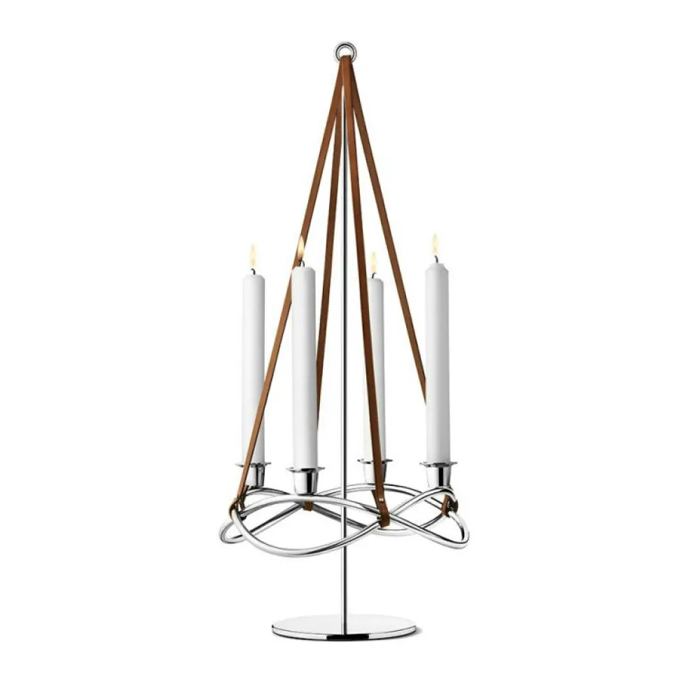 Tillbehör till ljusstaken Season från Georg Jensen. Med den här tilläggsmodulen ger du din Seasons-ljusstake ett lyft. Notera att ljusstaken inte ingår, men att den kan köpas separat. Modulen är tillverkad av blankpolerat rostfritt stål med bruna läderband. Mått: Ø: 260 mm x H: 608 mm.