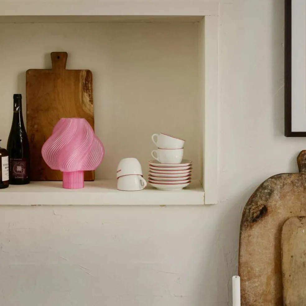 Lampan har inspirerats av mjukglass och ger varje utrymme en touch av nyckfullhet och nostalgi. Med en palett som sträcker sig från den krämiga elegansen hos Vanilla Bean till den lekfulla charmen hos Peach Sorbet, kan du välja mellan en rad vackra färger som lyfter inredningen.