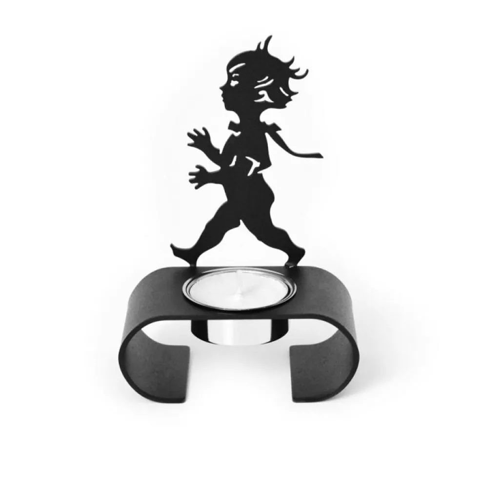 Solstickans stilrena ljushållare ger en extra effekt med solstickepojkens silhuett som dansar på väggen. Modern ljushållare som både förstärker mysfaktorn och stilen i hemmet.