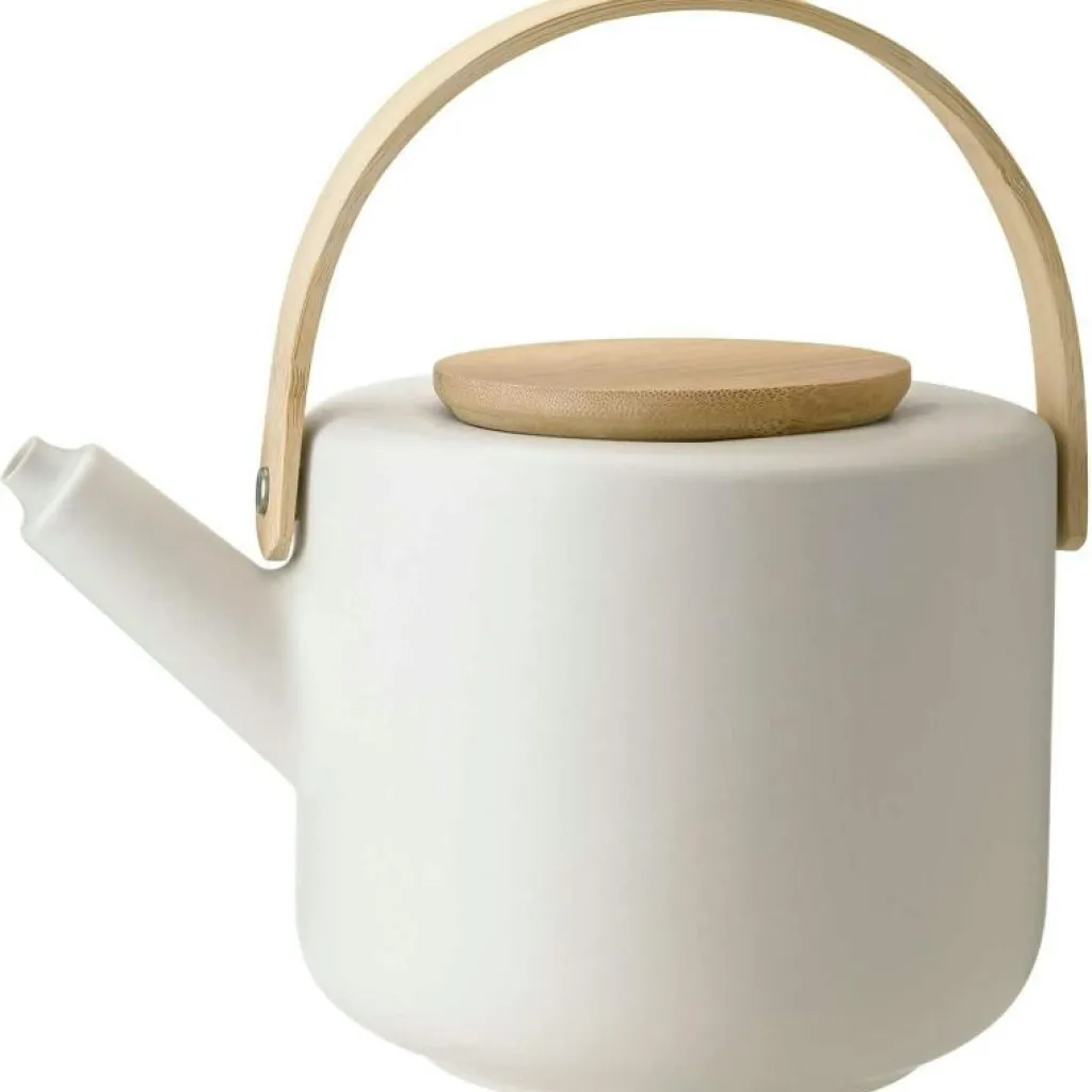 Tekanna från Stelton. Det här är en stilren och samtidigt rustik tekanna i stengods. Den är designad av Francis Cayouette och tillhör serien Theo, där skandinavisk design möter japansk kultur. Locket och handtaget är tillverkat i hållbar bambu. Rymmer 1,25 liter.