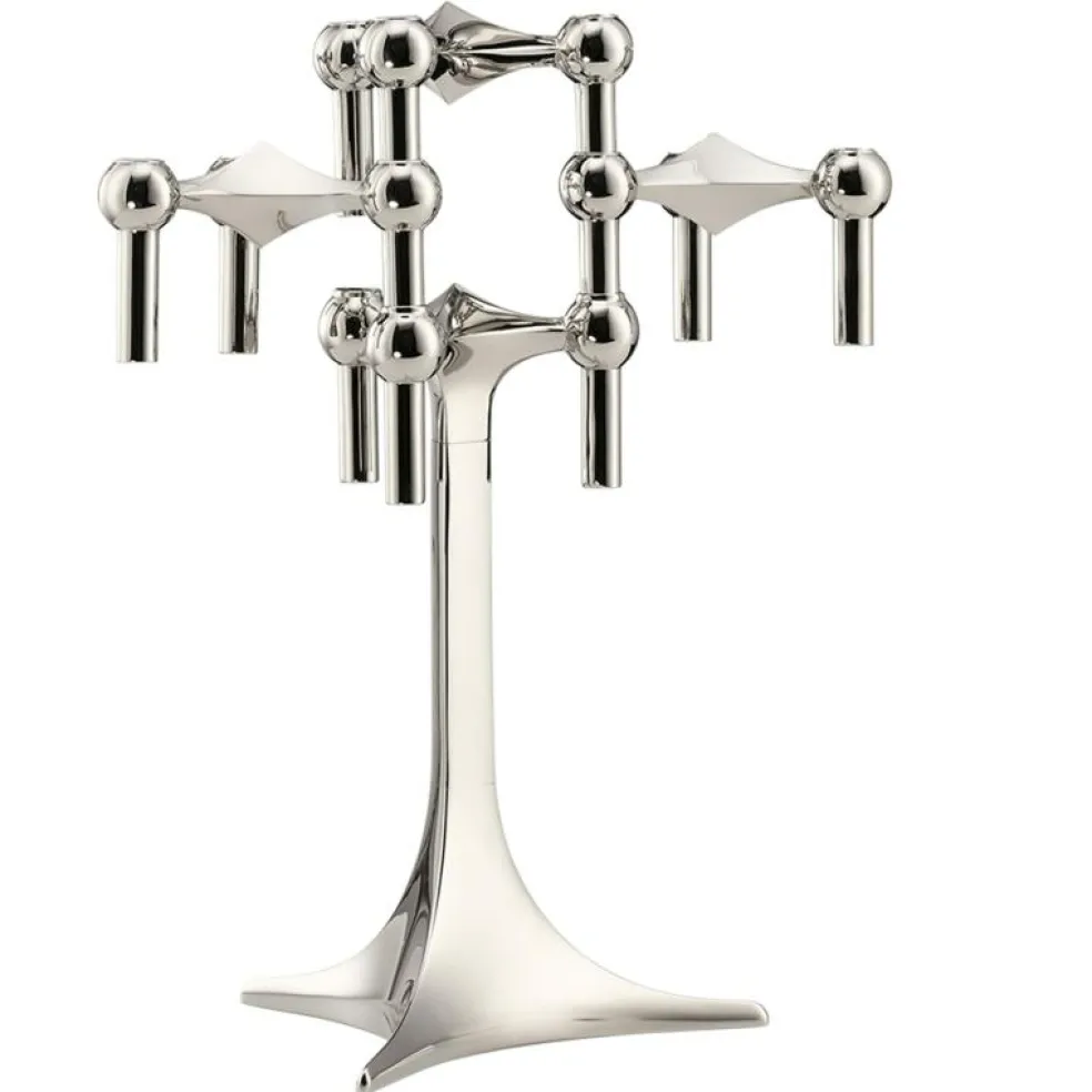 – Candle Holder’s Architect med 3 Stoff Nagel-ljusstakar i krom och ett bordsställ.