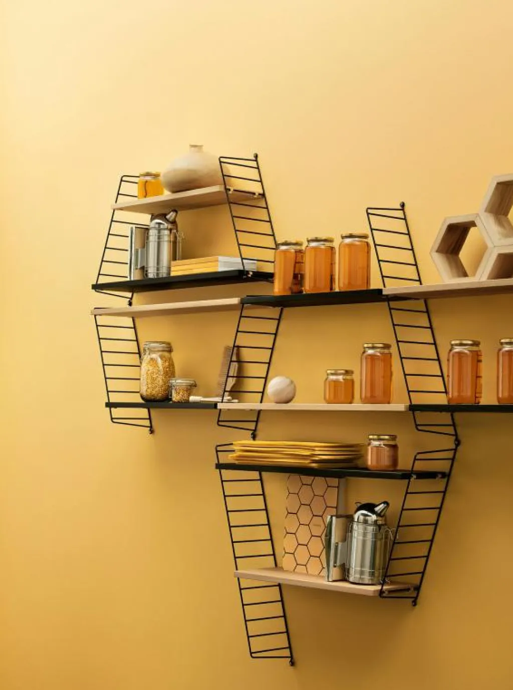 – Passar med String Plex väggavlar.