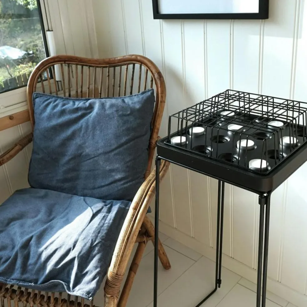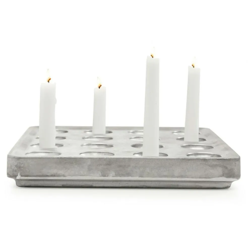 Ljushållare för för 16 ljusstumpar som låter ljusen brinna ner helt utan att lämna stearinfläckar på bordet.