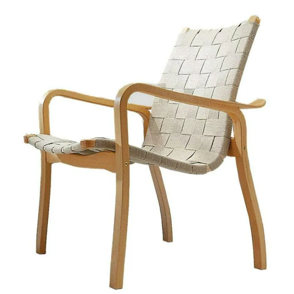 Primo från Swedese är en bekväm stol formgiven av Yngve Ekström, med tydliga släktdrag till den berömda fåtöljen Lamino. En fåtölj med hållbar design, kvalitet och funktion tillverkad av bok eller ek med sits av flätad sadelgjord. Finns med både hög och låg rygg och med tillhörande fotpall.