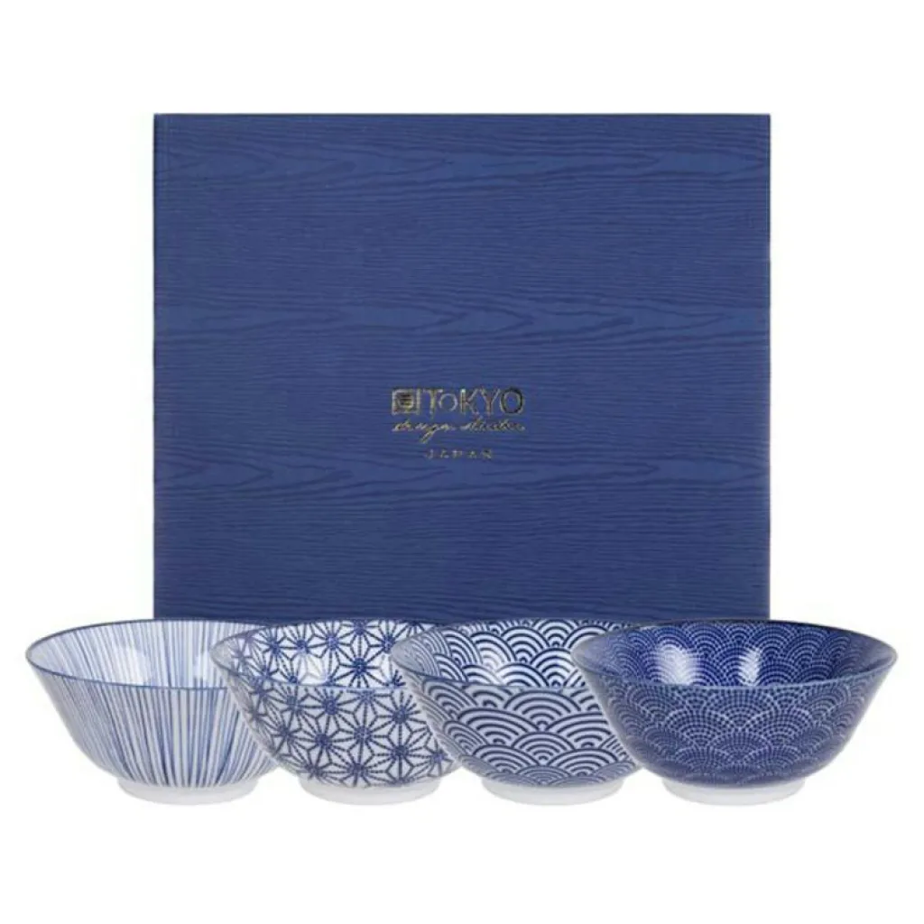 – Fyra blå, geometriska mönster.