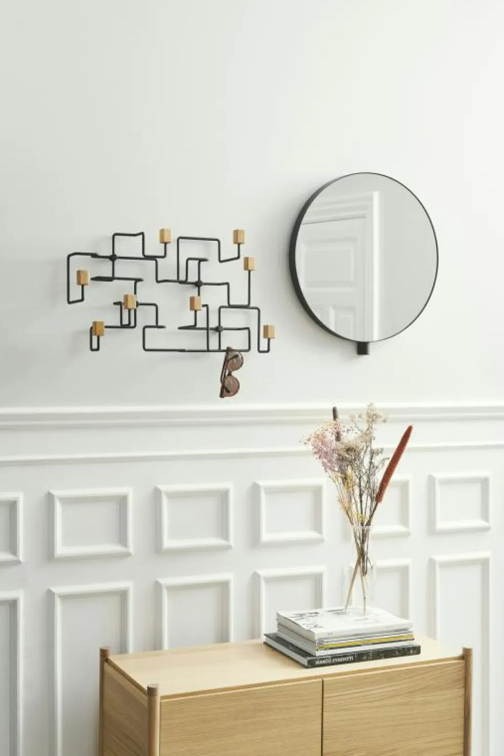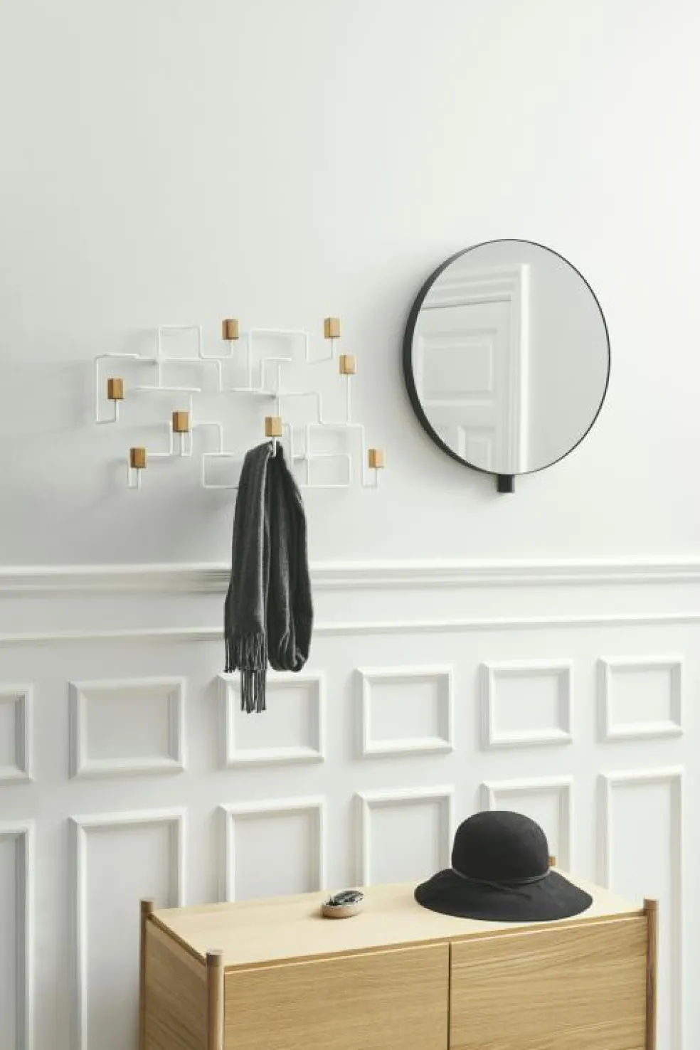 – Djärv design med imponerande ram med ett tredimensionellt uttryck och en matt yta och krokar i ek.
