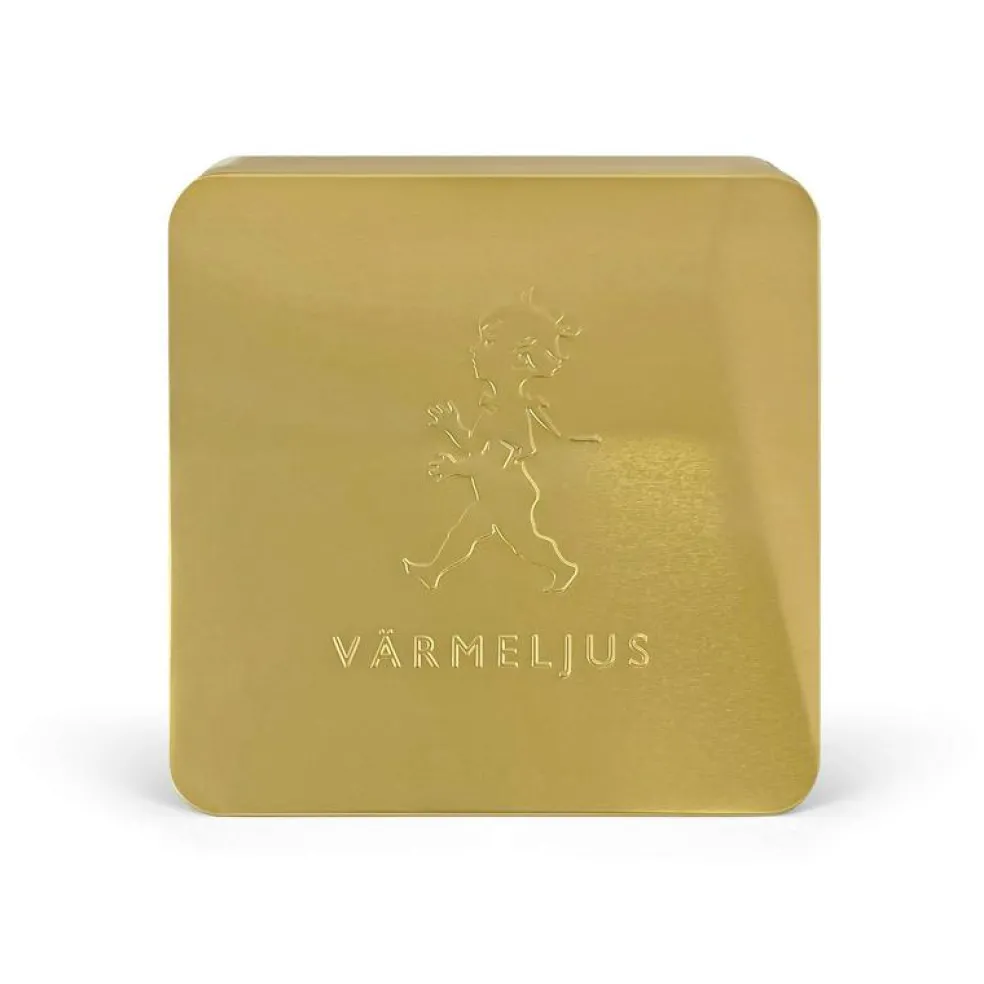 Praktisk plåtburk från Solstickan som är perfekt för förvaring av värmeljus. Den har en dekorativ design, och ovansidan pryds av den klassiska Solstickepojken.