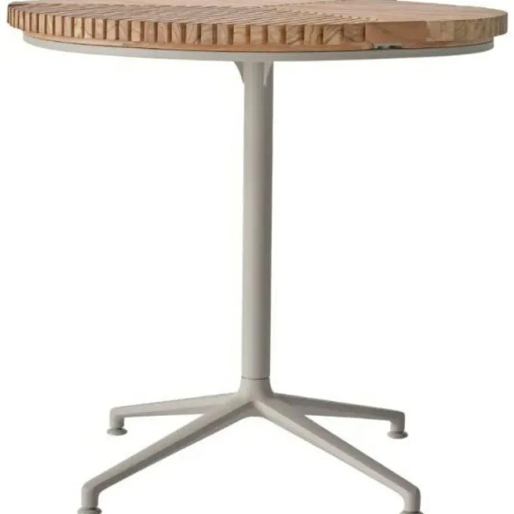 – Bordsskiva i hållbar teak med grafiskt lamellmönster.