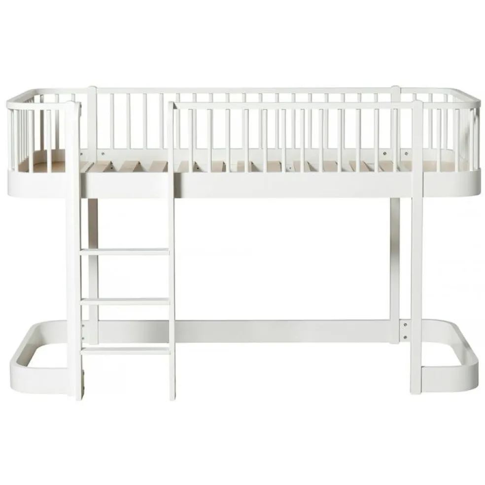 Wood Låg Loftsäng, 90x200cm, Vit från Oliver Furniture är en stilren och funktionell möbel för barnrummet, tillverkad av högkvalitativ björk och vitlackad MDF. Med sin robusta konstruktion och ljusa, luftiga design är denna eleganta loftsäng idealisk för mindre rum.