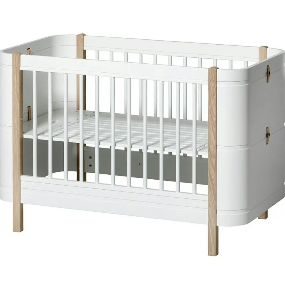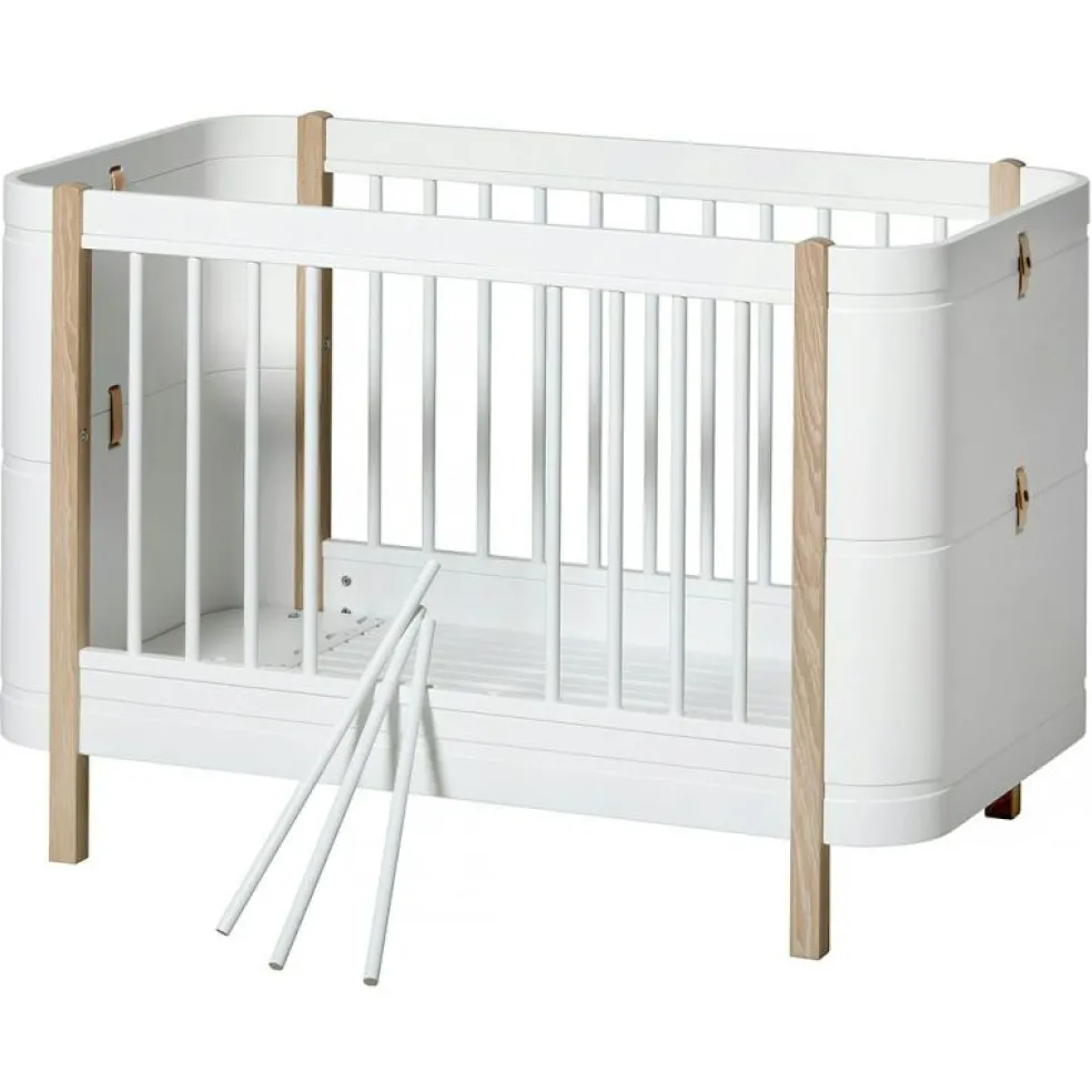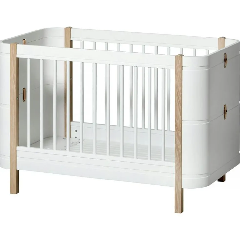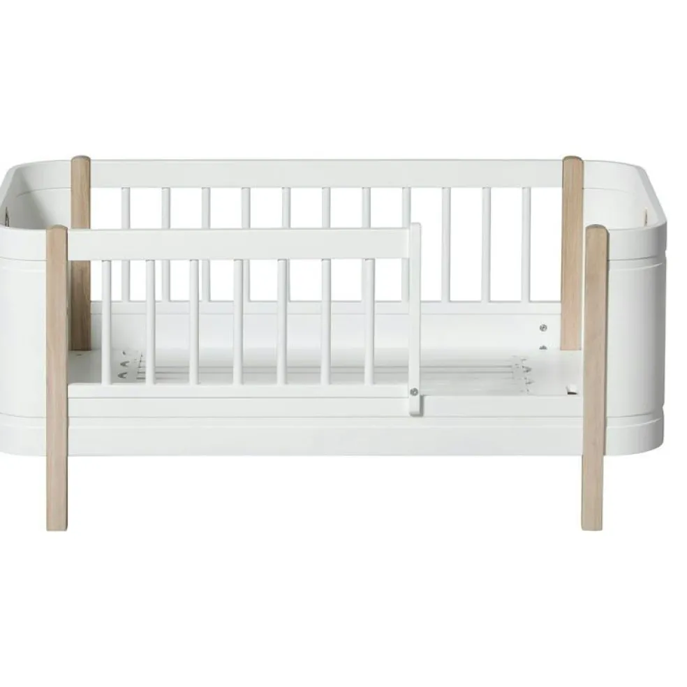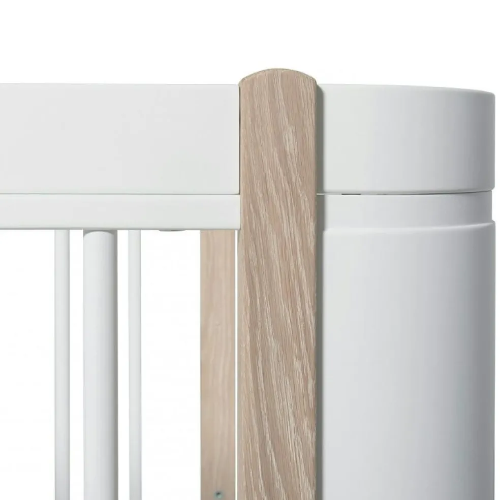 Wood Mini+ Cot Säng Inkl. Junior Kit, Vit/Ek från Oliver Furniture är en stilren och funktionell möbel avsedd för barnrummet, tillverkad av kvalitativt trä av björk, ek och vit ek.