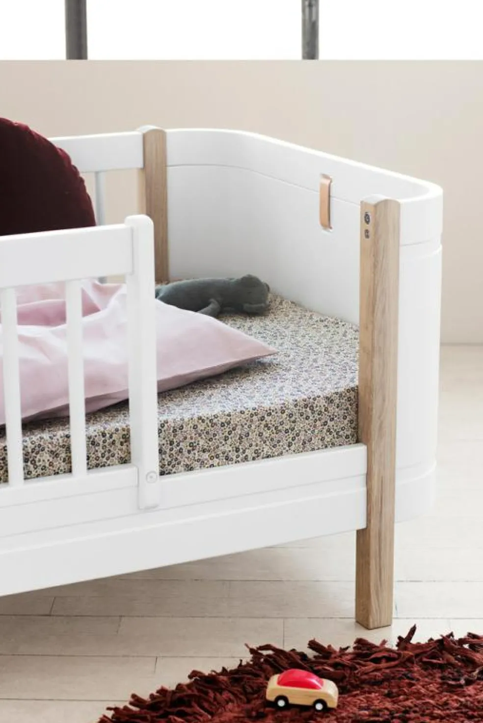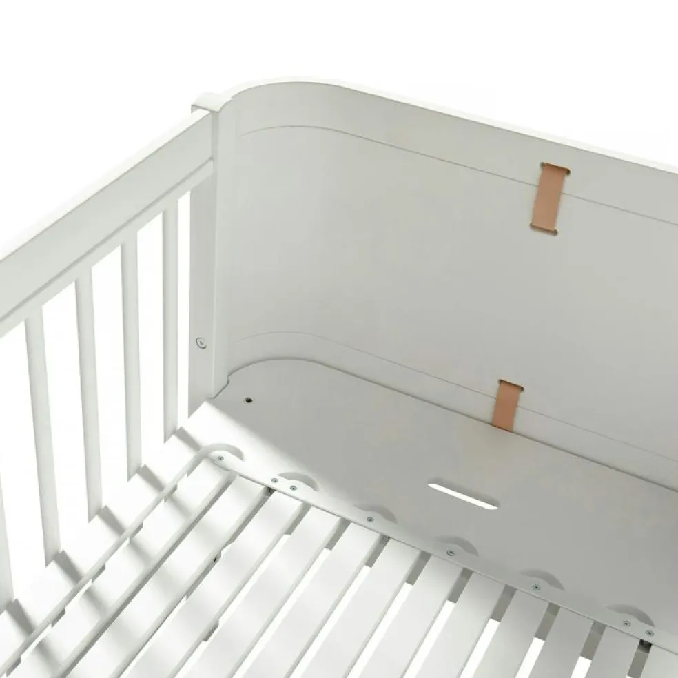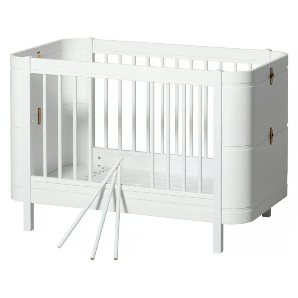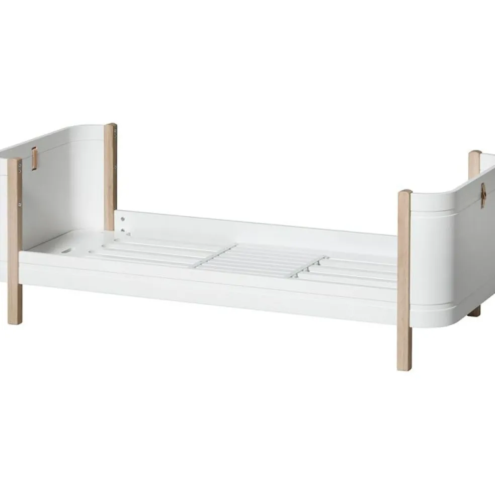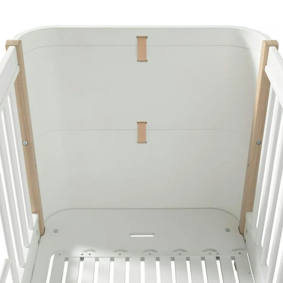 Wood Mini+ Cot Säng Inkl. Junior Kit, Vit/Ek från Oliver Furniture är en stilren och funktionell möbel avsedd för barnrummet, tillverkad av kvalitativt trä av björk, ek och vit ek.