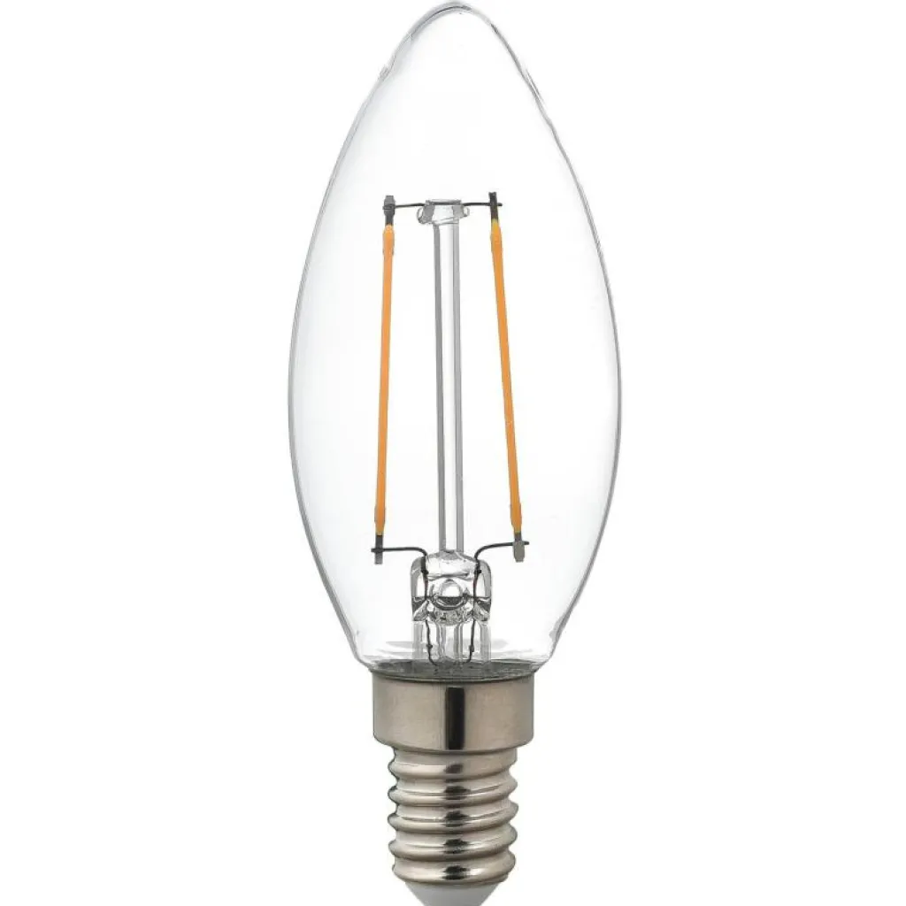 Airam LED Filament C35 2 kombinerar modern LED-teknik med klassiskt design. Med en effekt på 5W och varmvitt ljus på 2700K ger denna E14-lampa en stark belysning på 250lm. Idealisk för stämningsfullt ljus i hemmet.