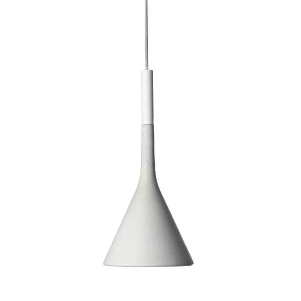 Den stilrena lampserien Aplomb är formgiven av Lucidi & Pevere för Foscarini. Aplomb är tillverkad i rå betong, vilket ger en rustik framtoning. Taklamporna passar i hallen, över köksbordet eller middagsbordet. Aplomb hänger fint både solitärt och i grupp. Aplomb ger ett mjukt men samtidigt direkt ljus tack vare den konliknande formen. Lampan kommer i tre olika färger – vit, grå cement och brun.