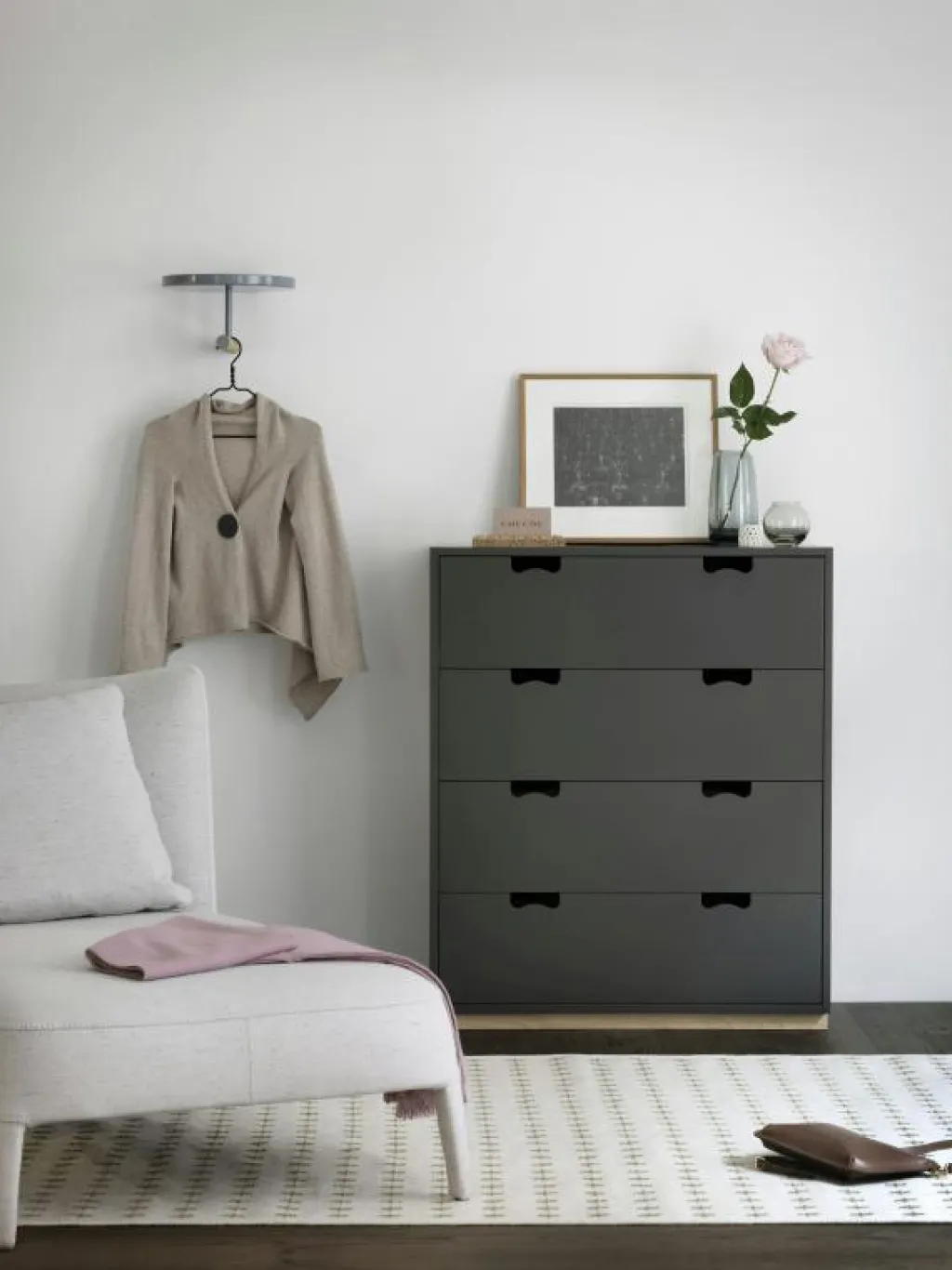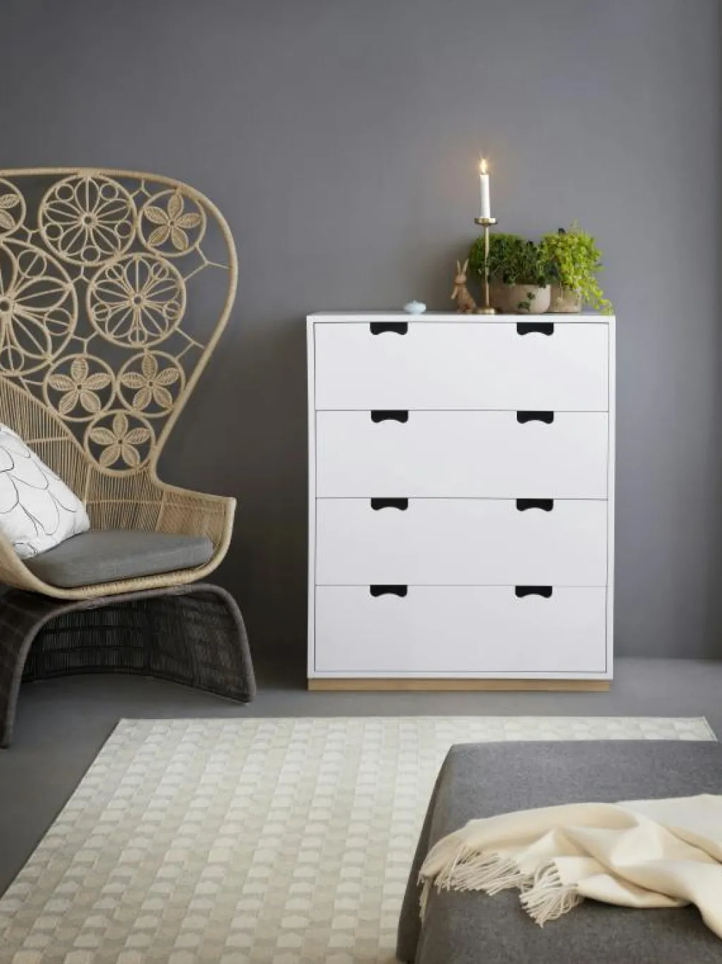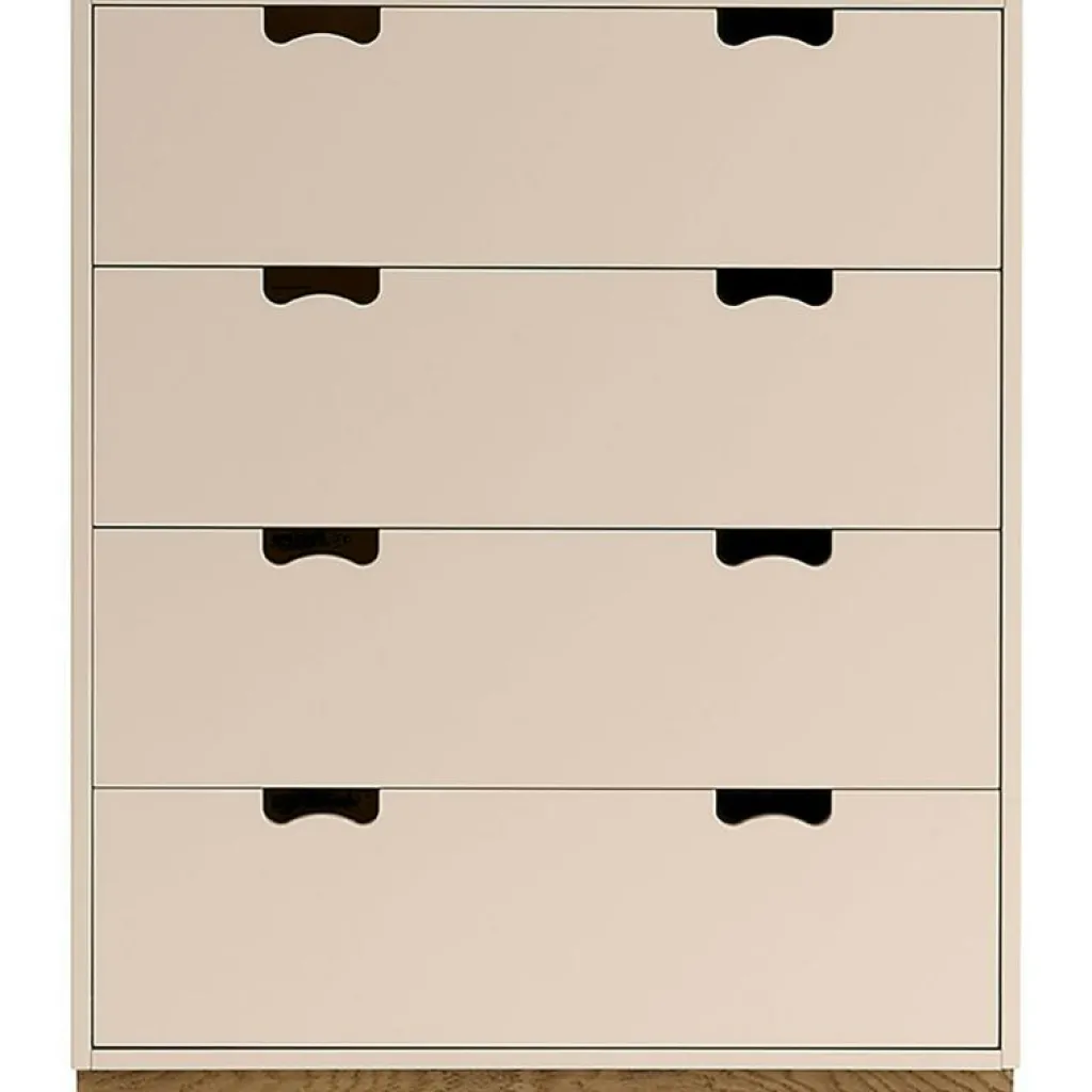 – Fyra mjukstängande lådor i lackerad MDF.