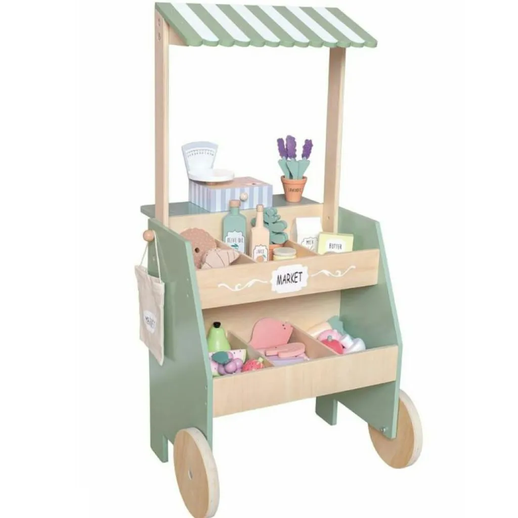 Marknadsståndet är inte bara en rolig leksak, utan också ett pedagogiskt verktyg. Genom att leka med marknadsståndet utvecklar barn sina sociala färdigheter, matematiska koncept och språk genom att skapa sina egna små affärer. Den är även lätt att montera och står stadigt, vilket gör den till ett tryggt och säkert val för både föräldrar och barn